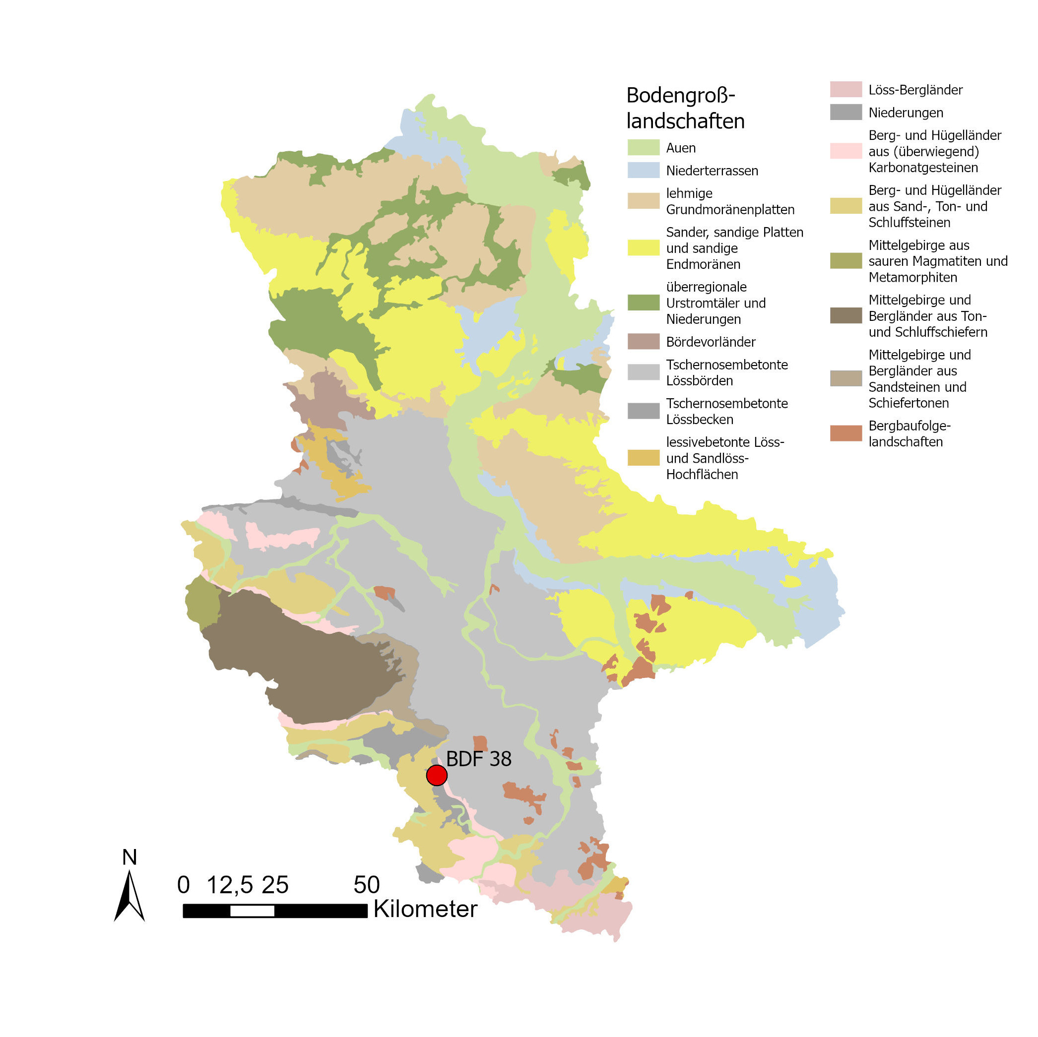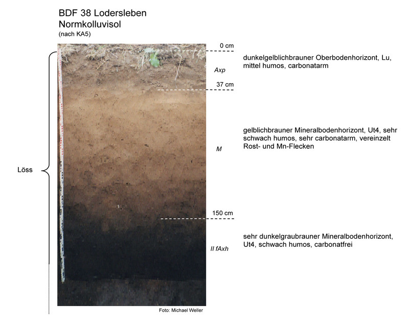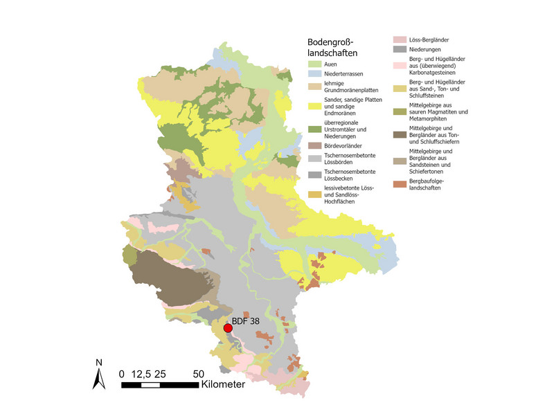Der Boden unter der BDF 38 ist einen Normkolluvisol aus Abschlämmlöss. Es handelt sich um einen ertragreichen Ackerstandort mit einer guten Nährstoffverfügbarkeit bei einer angepassten Bewirtschaftung (Nässe- und Verdichtungsgefahr zu berücksichtigen). Im Bereich des Oberbodens ist die Trockenrohdichte im geringen bis mittleren Bereich (1,4 Vol.-%), das Gesamtporenvolumen mittel (46 Vol.-%) und die nutzbare Feldkapazität im mittleren Bereich (14 bis 20 Vol.-%).