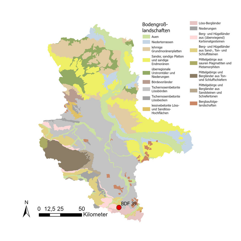 Der Boden unter der BDF 39 ist ein Parabraunerde-Tschernosem aus Löss. Es handelt sich um einen sehr ertragreichen Ackerstandort mit einer sehr guten Nährstoffverfügbarkeit, stabilem Wasserhaushalt und einer guten Bearbeitbarkeit. Im Bereich des Oberbodens ist die Trockenrohdichte im mittleren bis hohen Bereich (1,6 Vol.-%), das Gesamtporenvolumen gering bis mittel (38 Vol.-%) und die nutzbare Feldkapazität im mittleren bis hohen Bereich (20 bis 23 Vol.-%).