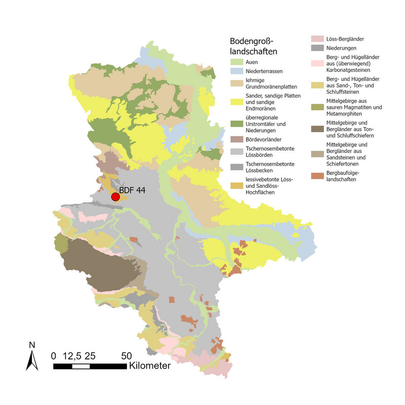 Bodengroßlandschaft: | lessivebetonte Löss- und Sandlöss-Hochflächen |