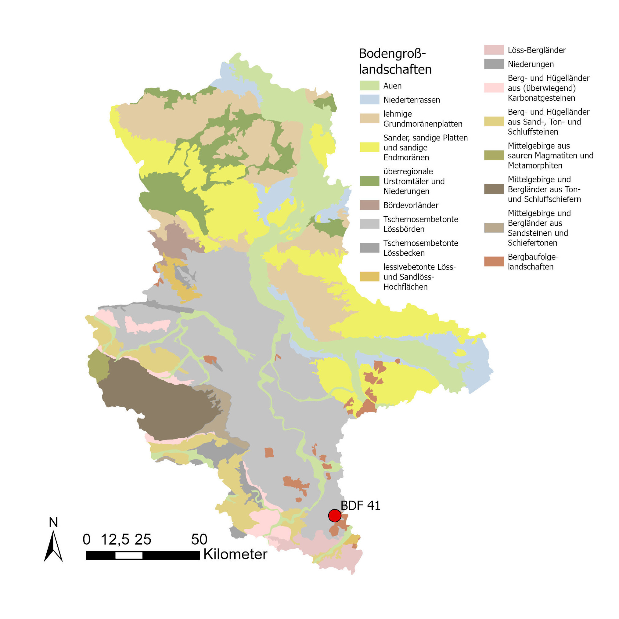 Die Boden-Dauerbeobachtungsfläche 41 befindet sich nord-östlich von Hohenmölsen im Burgenlandkreis und liegt im Bereich des Hohenmölsener Löss-Plateaus. Eingerichtet wurde die Fläche 1996 und wird durch das LAGB und das LAU jeweils innerhalb eines festgelegten Turnus beprobt. Die Fläche wurde zum Zeitpunkt ihrer Einrichtung als Ackerland bewirtschaftet und mittlerweile im Rahmen einer Ausgleichs- und Ersatzmaßnahme für den Straßenbau 2021 mit Eiche, Ahorn, Linde und weiteren Arten aufgeforstet
