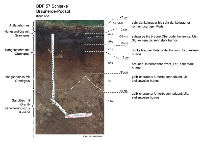 Die Boden-Dauerbeobachtungsfläche 57 befindet sich nördlich der Ortschaft Schierke im Landkreis Harz im Bereich des Hochharzes mit Granit des Brockens und Quarzit des Acker-Bruchberg-Zuges. Eingerichtet wurde die Fläche 1995 und wird durch die NW-FVA, das LAGB und das LAU jeweils innerhalb eines festgelegten Turnus beprobt. Es handelt sich bei der Fläche um eine ehemals mit Fichten bestockte Fläche innerhalb des Nationalparks Harz, welche seit dem Totalausfall der Fichten durch Kalamitätsschäden der natürlichen Sukzession überlassen wird.