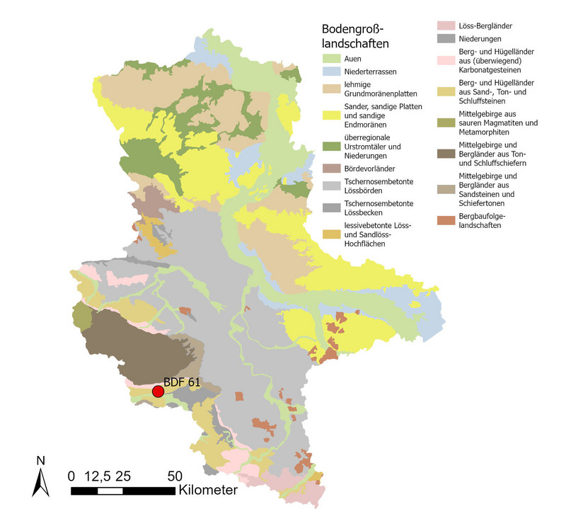 Der Boden unter der BDF 61 ist eine erodierte Parabraunerde aus grusführendem Sandlöss über carbonathaltigen Fließerden aus Schluffstein- und Pelit-Verwitterung. Es handelt sich um einen leistungsfähigen Grünlandstandort, welcher auf Grund der Hanglage der Erosion ausgesetzt ist. Im Bereich des Oberbodens ist die Trockenrohdichte gering (1,29 Vol.-%), das Gesamtporenvolumen hoch (51 Vol.-%) und die nutzbare Feldkapazität mittel (16 bis 18 Vol.-%).