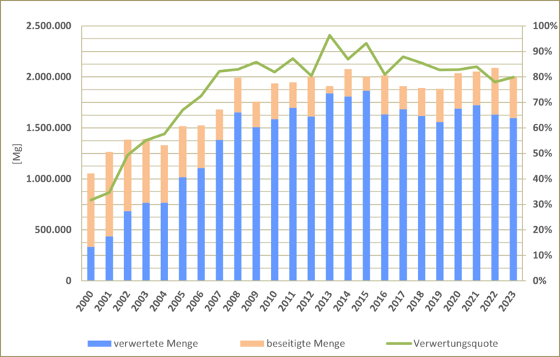 Rund 80 % der 2023 in Sachsen-Anhalt entsorgten 1.998.602 Mg gefährlichen Abfälle wurden einer Verwertung zugeführt. Von den aus dem Ausland importierten gefährlichen Abfällen wurden rund 55 % verwertet.