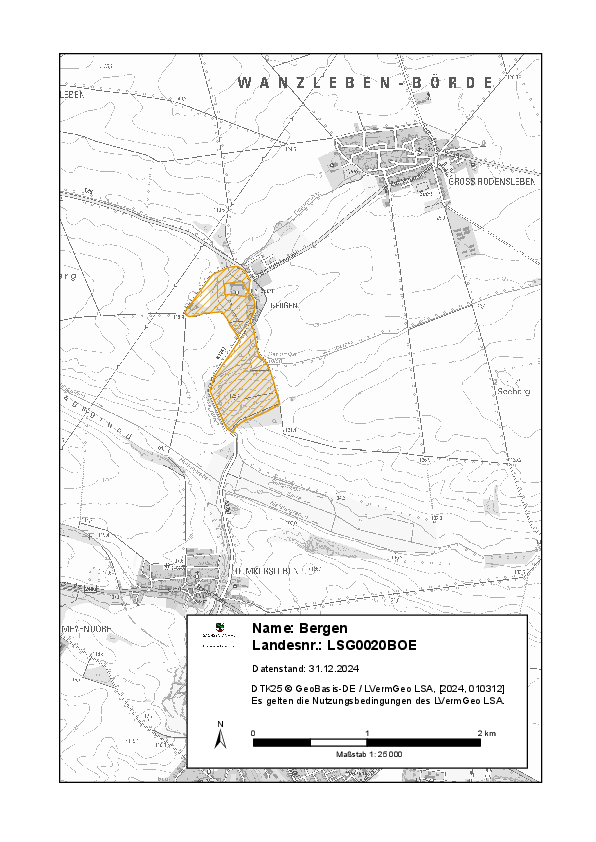 Das LSG Bergen liegt inmitten der Landschaftseinheit Magdeburger Börde in der Bachniederung der Dremse bei dem Gut Bergen, zwischen Seehausen und Groß Rodensleben.