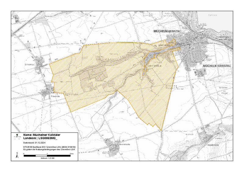 Nach der naturräumlichen Gliederung liegt das LSG Müchelner Kalktäler im südöstlichen Teil der Landschaftseinheit Querfurter Platte.